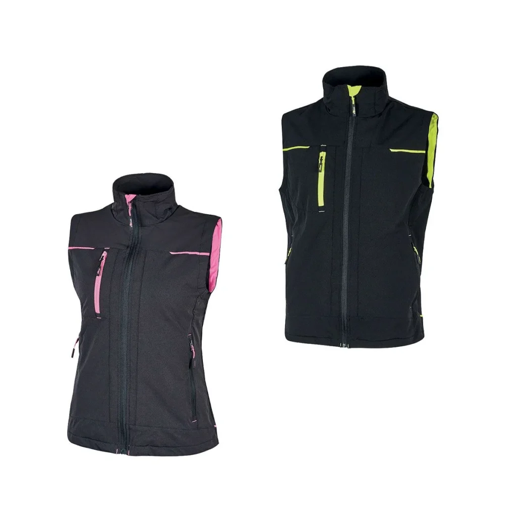 Gilet in tessuto U-4 (U-Power 4 way stretch) molto comodo, resistente, morbido sulla pelle, idrorepellente, traspirante e asciuga rapidamente. Dotata di due tasche frontali e una tasca porta cellulare sul petto chiuse con zip. Nastro reflex su colletto nella parte posteriore. Due ampie tasche interne.